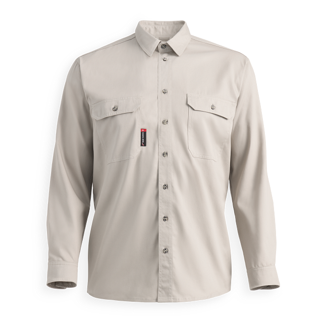 This comfortable work shirt has an extra long body, button-down pockets, cuffs and button-down front. All major seams are double- or triple-stitched with stress points bar-tacked for strength. |
